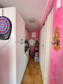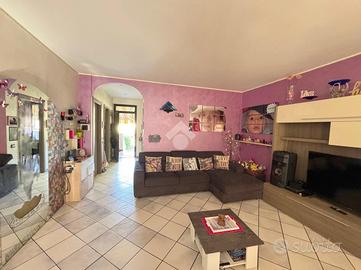 Varcata la porta d'ingresso, si è accolti da un corridoio che conduce alla zona giorno, composta da un ampio e luminoso soggiorno con affaccio diretto sul giardino, cucina abitabile e bagno di servizio finestrato.