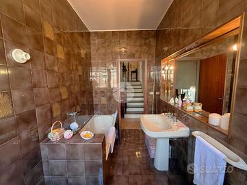 Al piano rialzato ampio soggiorno,pranzo/cucinotto con accesso allo scoperto ed un ripostiglio.Al primo piano,2 matrimoniali,1 singola e 2 bagni. Al piano mansardato, 3 locali,servizio e terrazzino..Al piano seminterrato,con accesso anche dal giardino,taverna con camino,bagno e garage.