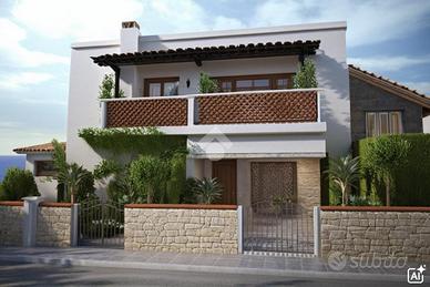 L'immobile è composto da due entrate indipendenti con giardino privato di circa 50 mq. Al suo interno troviamo ingresso-soggiorno, cucina abitabile con accesso a un balcone lato mare e un bagno. Al primo piano disimpegno, tre camere da letto, un bagno e un terrazzo vista mare di circa 20 mq.