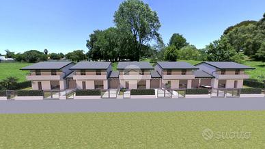 In un contesto residenziale tranquillo e curato, proponiamo in vendita un nuovo complesso di villette a schiera, progettate per offrire spazi ampi, luminosi e funzionali. Le abitazioni, sviluppate su due livelli, presentano al piano terra un open space con soggiorno e cucina, bagno di servizio e ripostiglio; al primo piano, tre camere da letto e bagno principale, con balconi che garantiscono luminosità e viste sul giardino. Ogni villetta dispone di giardino privato e box auto.