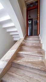 L'immobile si sviluppa su più livelli. Al piano terra, di circa 60 mq, troviamo l'ingresso nel soggiorno con uscita su terrazzo, cucina con accesso al medesimo terrazzo, sala da pranzo con balcone e bagno. Dal terrazzo del piano terra si accede a una corte esterna di circa 65 mq, in parte pavimentata e in parte adibita a giardino