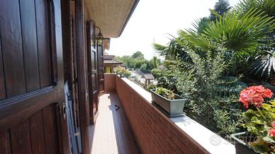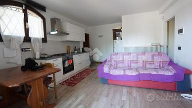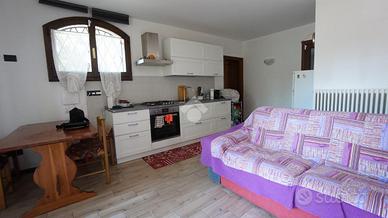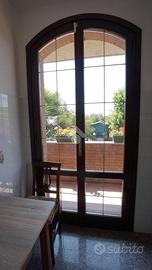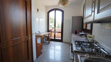 Cucina semi-abitabile separata, bagno finestrato e balcone accessibile sia dalla cucina che dal soggiorno, con vista sul verde in totale privacy.