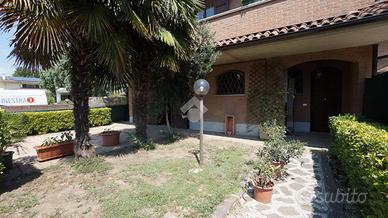 Completano la proprietà un giardino privato di circa 200 mq posto frontalmente alla villetta, separato dalla strada interna e dotato di due posti auto e zona barbecue attrezzata.