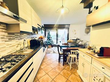 Situata in una via tranquilla di sole villette, a pochi metri dal centro di Gassino Torinese, villetta a schiera recentemente ristrutturata, dotata di cortile indipendente con cancello e giardino privato sul lato opposto. L'ingresso conduce a un disimpegno servito da portoncino blindato; la cucina è abitabile e la zona giorno living, affacciata sul giardino privato, è impreziosita da un camino elettrico che conferisce armonia e calore all'ambiente. Nel giardino, sotto il portico, è presente una comoda area lavanderia. Completa il piano terra un bagno con box doccia, oltre a una cantina ampia e una dispensa situate al piano interrato.