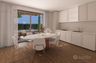 Sono previsti serramenti in PVC con doppio vetro, riscaldamento a pavimento completo di pompa di calore, predisposizione per impianto di condizionamento e impianto fotovoltaico di 3kW.