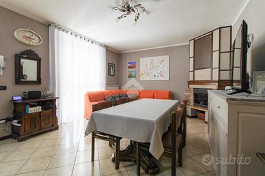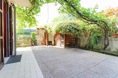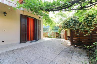 La soluzione si sviluppa su tre livelli: al piano terra abbiamo la zona giorno con soggiorno, cucina separata abitabile che accede al giardino sul retro e toilette finestrata con sanitari in ceramica e allacci per la lavatrice. In soggiorno è presente un fuoco in muratura a legna.