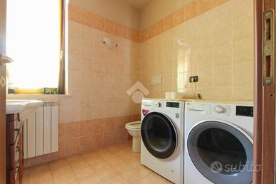 Al piano interrato abbiamo il box auto doppio, seconda toilette e taverna pavimentata, dotata di due finestre a bocca di lupo, cucina completa e, a sua volta, di fuoco in muratura che si ricollega alla stessa canna fumaria del soggiorno. Sono previste spese condominiali di circa 30 euro mensili.