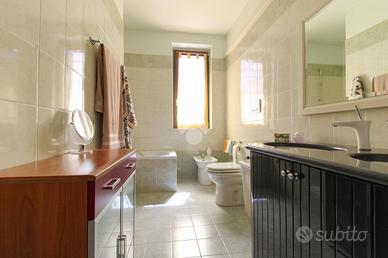 Al piano primo abbiamo la zona notte, costituita da tre camere da letto, di cui una matrimoniale e due singole, bagno principale con sanitari in ceramica e vasca e due balconi fruibili dalla camera padronale e da una delle singole.