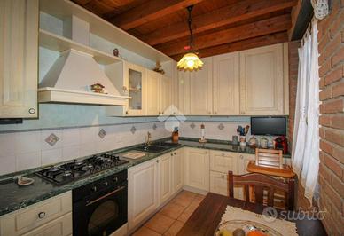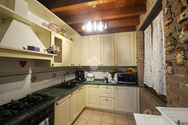 COSA SAPERE SULLA CASA: SOGGIORNO- CUCINA- 3 BAGNI- 2 CAMERE- BOX- CANTINA- PORTICO- GIARDINO PARTICOLARITA' E DESCRIZIONE: in zona residenziale rinomata disponiamo di villa di testa disposta su due livelli oltre interrato. Al piano terra atrio di ingresso, ampia zona giorno con accesso alla cucina separata e bagno di servizio. Al piano superiore due camere da letto, bagno con doccia e loggia. Accesso diretto all'interrato con bagno/lavanderia, cantina e box. A completare la soluzione giardino privato con portico vivibile. Parte dell'arredo compresa nel prezzo.