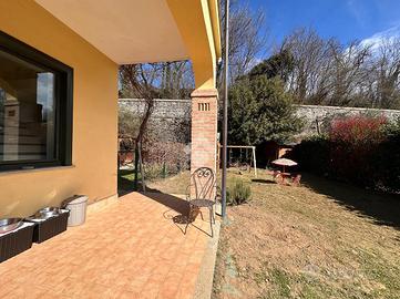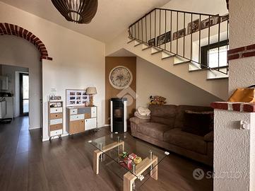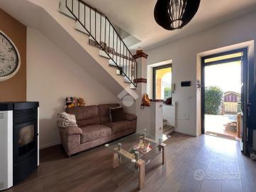 Al confine tra Giaveno e Coazze, in zona tranquilla e soleggiata, villa a schiera angolare con giardino privato di circa 350mq in piccolo contesto condominiale. L'immobile, libero sulle tre arie, si dispone su tre livelli. A piano terra si compone di soggiorno living, cucina abitabile e bagno. Al piano primo collegato da scala interna in muratura, vi sono una camera matrimoniale con balcone, uno studio con terrazzino ed un bagno. Al secondo ed ultimo piano, un'ampia mansarda. Al piano interrato, la cantina. Il riscaldamento è autonomo alimentato tramite stufa ad idropellets collegata all'impianto di riscaldamento, in piu' vi è la possibilità tramite scambiatore di utilizzare il classico riscaldamento a gpl.