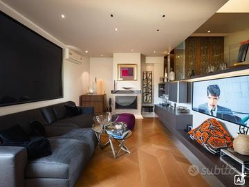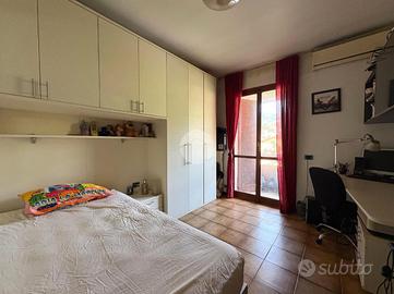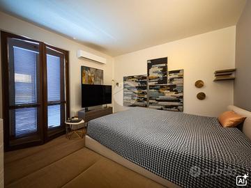 La zona notte si distribuisce su due livelli; al primo, ammezzato, sono presenti un servizio finestrato con vasca e la camera padronale.