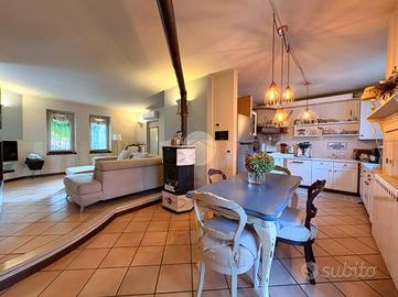 L'abitazione, si apre al piano terra sulla zona giorno di buone metrature con una pianta aperta, ma facilmente divisibile, avvalorata dalla presenza di un termo camino che riscalda tutto il living, oltre a portare calore anche al piano primo tramite delle bocchette di ventilazione canalizzata in tutti i locali del piano superiore.