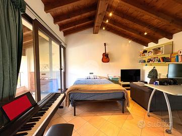 Salendo ai piani superiori, troviamo la zona notte, dove sono presenti due camere da letto matrimoniali, di cui una con balcone, ed una veranda all'inglese ad oggi utilizzata come camera da letto singola. Parte degli spazi a questo livello ha come caratteristica delle travi a vista in quando ricavato da un ampliamento della proprietà per recupero di cubatura.