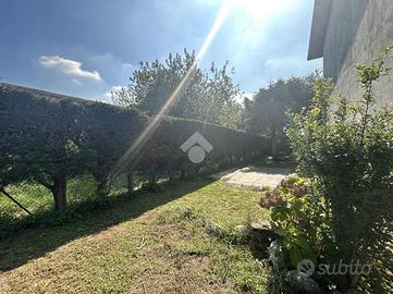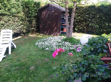 ISOLA D/S: Villa a Schiera d'angolo di mq. 285 circa con giardino privato, situata in una zona residenziale tranquilla e ben collegata. Al piano terra l'ingresso indipendente, conduce direttamente ad un ampio soggiorno con camino in muratura e cucina abitabile. Al piano primo la zona notte è composta da tre camere da letto e bagno finestrato. Al piano interrato, un grande locale taverna con camino, bagno, ripostiglio, lavanderia e un garage doppio in larghezza. La casa è circondata da un ampio giardino di proprietà, che garantisce privacy e ampi spazi verdi per attività all'aperto.