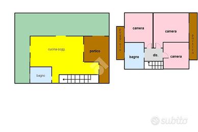 Il piano terra, composto dalla zona giorno in open space, con accesso al giardino privato e al portico, e il primo bagno; salendo al piano primo troviamo la zona notte che comprende camera singola, camera doppia e camera matrimoniale, servite dal secondo bagno finestrato, scendendo al piano interrato, troviamo la taverna di 30 mq ca, centrale termica e lavanderia.