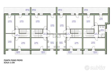 Ogni unità si sviluppa su due livelli: al piano terra si trova il garage collegato alla zona giorno tramite un pratico disimpegno, un bagno completo di doccia e una zona living "open space" con cucina a vista, studiata per distinguere nettamente l'area cucina da quella del soggiorno, con vista sul giardino privato. Al piano superiore si trova la zona notte, con tre camere da letto, un bagno ampio e un terrazzo utile e panoramico. Tutte le abitazioni saranno classificate in categoria energetica "A" secondo le linee guida nazionali.