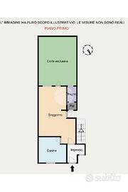 L'immobile si presenta con spazi ampi e ben organizzati. Al primo piano troviamo un ingresso su disimpegno, soggiorno con accesso diretto alla corte esterna, cucina abitabile, ripostiglio e bagno finestrato con doccia. La corte, in parte pavimentata e in parte a giardino, è arricchita da una tettoia in legno che la rende ideale per pranzi all'aperto o momenti di relax.