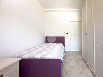Al secondo piano si sviluppa la zona notte composta da tre camere da letto: una matrimoniale con balcone e due camere singole, oltre a un secondo bagno finestrato con doccia. Il piano terra ospita un comodo garage e un locale sgombero, collegati tra loro, ideali anche come zona lavanderia o per uso deposito.
