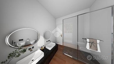 Al piano terra, verrai accolto da un'ampia zona giorno con soggiorno, cucina abitabile con impianto ad induzione entrambi con accesso al giardino ed un primo servizio finestrato.