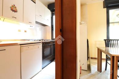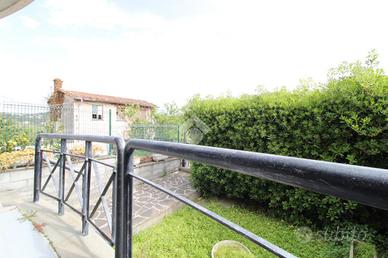 Salendo al primo piano, vi accoglie un luminoso soggiorno, con affaccio sul piccolo giardinetto e una sala da pranzo con angolo cottura, dalla quale si accede alla corte pavimentata sul retro della casa, perfetta per cene all'aperto.