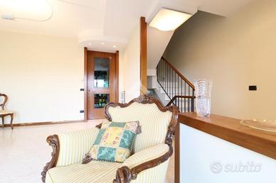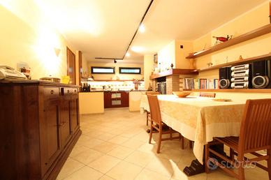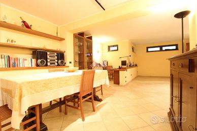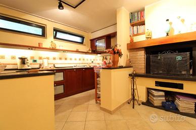 Al piano terra, troverete un garage, attualmente adibito a cantina, con accesso diretto alla grande taverna che è il cuore della casa, con un accogliente caminetto, cucina attrezzata, tavolo da pranzo, studiolo e bagno.