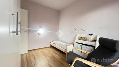 La zona notte, distribuita al primo piano, ospita una cameretta con balcone, una confortevole camera matrimoniale e due bagni finestrati entrambi con doccia, pensati per unire praticità e comfort. Al secondo e ultimo piano, un ulteriore ambiente versatile si presta a diventare una raffinata camera padronale oppure uno studio silenzioso e riservato.