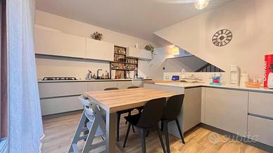 Questa villetta a schiera centrale, costruita nel 1985 e completamente ristrutturata tra il 2022 e il 2023, unisce il fascino della solidità con il comfort del moderno.