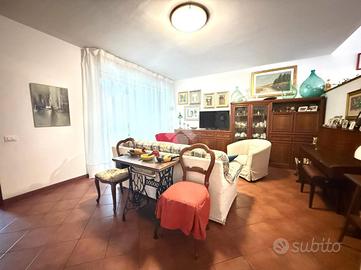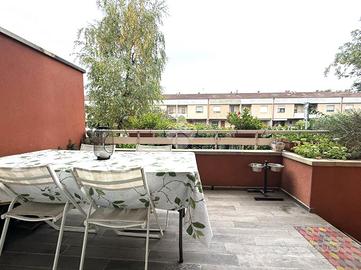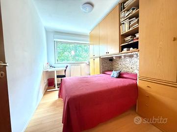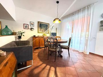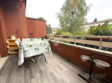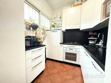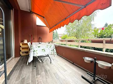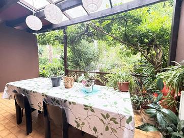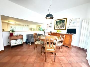 Il soggiorno si apre su un terrazzo vivibile, ideale per pranzi estivi e momenti di relax. La cucina separata con sala da pranzo affaccia invece su un balcone che da su un ulteriore spazio verde, creando una piacevole continuità tra interno ed esterno.