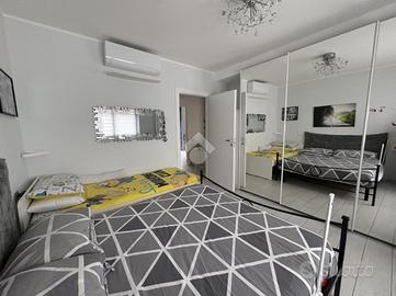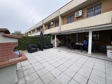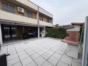 Zona Flora, proponiamo una villetta a schiera centrale della metà degli anni '80 ristrutturata a nuovo nel 2020. Ideale per chi cerca una soluzione abitativa su più livelli. Al piano terra, l'ingresso accoglie in un ampio e luminoso soggiorno collegato a una cucina abitabile a vista. Completano il piano un servizio e un giardino privato piastrellato ideale per godere di momenti di relax all'aperto. Al piano primo, la zona notte si compone di tre camere da letto offrendo spazio e comfort per tutta la famiglia, accompagnate da un servizio e due balconi che donano luminosità agli ambienti. Completa la proprietà un comodo ripostiglio nella zona notte. Al piano seminterrato box singolo e locale cantinato. La proprietà ha subito una completa ristrutturazione: impianti pavimentazione e rivestimenti dei locali, porte interne, infissi in pvc con doppio vetro completi di zanzariere e inferriate, aria condizionata, caldaia autonoma a condensazione. Questa soluzione abitativa rappresenta un'opportunità per chi desidera vivere in un contesto tranquillo e ben organizzato. L'immobile è inserito in un complesso residenziale stile residence nel quale sono presenti delle spese condominiali annuali contenute.