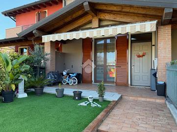 Nel comune di Leno, proponiamo in vendita una villa a schiera di 110 mq, costruita nel 2008. Questa abitazione, appartenente alla categoria civile, offre un ambiente accogliente e funzionale. La disposizione interna è studiata per garantire comfort e praticità, con spazi ben distribuiti su più livelli. Al piano terra, si trova un ampio soggiorno che si apre su una cucina abitabile, ideale per momenti conviviali. Le camere da letto, situate al piano superiore, offrono tranquillità e privacy. Completano la proprietà un giardino privato, perfetto per il relax all'aperto, e un garage con accesso diretto all'abitazione. La villa è situata in una zona residenziale ben servita, con facile accesso ai principali servizi e collegamenti stradali. Una soluzione abitativa che coniuga modernità e praticità, ideale per chi cerca una casa confortevole in un contesto tranquillo.