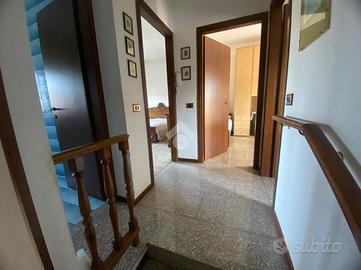 Il primo piano ospita tre camere da letto: una cameretta, una camera matrimoniale hanno affaccio su balconi che regalano luminosità e aria fresca agli ambienti mentre una seconda cameretta non ha sfogo infine c'è un ulteriore bagno con box doccia.