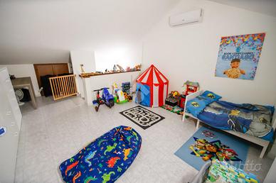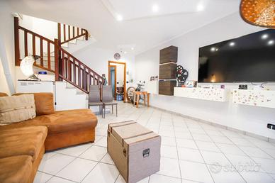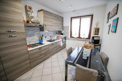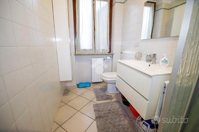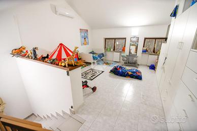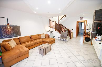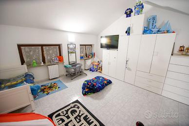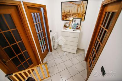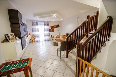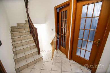 Vicino ai servizi del paese e alla fermata del pullman, villetta a schiera centrale. La soluzione si sviluppa su più livelli abitativi. Al piano terra si accede al cortile privato con accesso diretto al box auto doppio sviluppato in lunghezza. Completa il piano la cantina e la lavanderia. Dalla scala interna in muratura si giunge al primo piano nel quale è presente un ampio soggiorno con affaccio sul balcone, la cucina abitabile ed il bagno finestrato con doccia. Al piano superiore si accede alla zona notte composta da luminosa camera matrimoniale anch'essa con balcone, cameretta, attualmente adibita a cabina armadi e secondo servizio, sempre con finestra e doccia, recentemente ristrutturato. L'ultimo livello ospita una spaziosa mansarda non abitabile, utilizzabile come ulteriore camera, nella quale è stato installato l'impianto di condizionamento. Gli infissi sono con il doppio vetro in legno, alcuni dotati di zanzariere. L'immobile è provvisto di due sistemi di riscaldamento, la caldaia a metano e termostufa, ciò permette di abbattere notevolmente le spese di riscaldamento. L'immobile gode di cortile privato pavimentato con autobloccanti, perfetto da sfuttare nella bella stagione per momenti di relax o come ulteriore area di parcheggio.