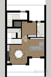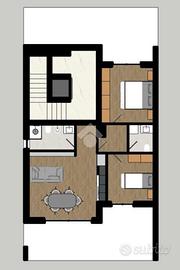 Il secondo piano offre un'ulteriore camera da letto, ideale per ospiti o per chi desidera un po' di indipendenza, e un ampio salotto conviviale, che può essere utilizzato come zona relax o come ulteriore spazio per trascorrere il tempo in famiglia. Inoltre, non manca un bagno, per garantire il massimo della praticità.
