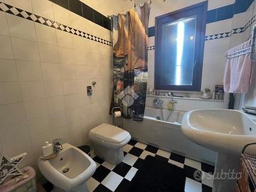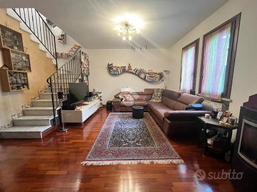 MANTOVA- VENDESI Località Castelletto Borgo. Villetta a schiera centrale con giardino fronte e retro, l'immobile è disposto su due livelli e risale alla metà degli anni '90. L'ingresso pedonale si affianca all'ampia doppia autorimessa con lavanderia e riscaldamento, varcato il cancellino si accede immediatamente al giardino frontale. All'interno, si viene accolti dal soggiorno, abbellito dalla pavimentazione in parquet e con stufa a pellet installata. L'attigua cucina è separata, molto ampia e abitabile, con accesso al giardino sul retro, accessoriata di comodo sottoscala sfruttabile come dispensa e rifinita con doppia pavimentazione in parquet e in marmo. A completare il piano, un antibagno e il primo servizio con doccia sensoriale multifunzione, tra cui la modalità bagno turco, e in cui è presente un altro attacco per lavatrice. Percorrendo le scale in marmo, si giunge al piano notte costituito da due camere matrimoniali dotate del rispettivo split per l'aria condizionata, una di esse è accessoriata di balcone, una camera singola, un comodo ripostiglio con accesso al sottotetto tramite botola e, infine, il secondo servizio con vasca idromassaggio. La soluzione presenta riscaldamento autonomo, pannelli fotovoltaici da 3kw, implementabili fino a 9kw, split con anche funzione di pompa di calore e infissi in vetrocamera. La soluzione si vende quasi completamente ammobiliata e si libera in breve tempo. Ubicata in una zona centrale ma tranquilla di Castelletto Borgo, a pochi passi dalle fermate dei mezzi di trasporto pubblico. Per maggiori informazioni contattaci ai nostri recapiti: Telefono: Mail: mnhec@tecnocasa.it Scopri altre offerte sul nostro sito web: sangiorgiobigarello1.tecnocasa.it Canali social: Facebook Gruppo Tecnocasa San Giorgio Bigarello Instagram @tecnocasasangiorgiomn