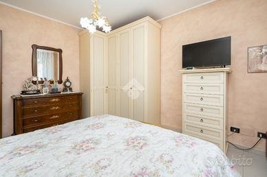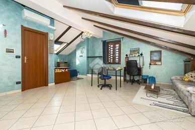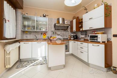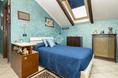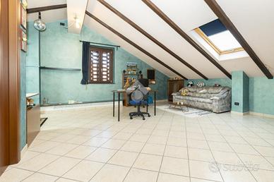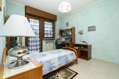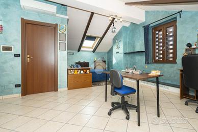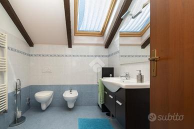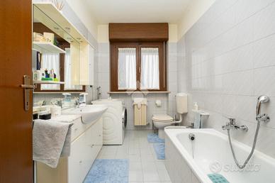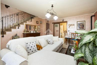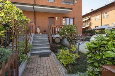 VILLETTA A SCHIERA ANGOLARE IN VENDITA In un tranquillo contesto residenziale in mattoni a vista, proponiamo in vendita splendida villetta a schiera angolare, ideale per chi desidera indipendenza, comfort e spazi esterni vivibili. La soluzione si sviluppa su più livelli ed è caratterizzata da ambienti luminosi e ben distribuiti, grazie all'ottima esposizione est/ovest. Al piano d'ingresso troviamo un ampio soggiorno, caldo e accogliente, dotato di canna fumaria e stufa a pellet inclusa, perfetto per momenti di relax. La cucina è separata da una raffinata porta scorrevole in vetro decorato e garantisce funzionalità e privacy. Completa il piano un bagno finestrato con vasca. Dalla cucina si accede a un giardino piastrellato di circa 40 mq, attrezzato con barbecue: lo spazio ideale per cene all'aperto e momenti in compagnia. Presente anche un secondo giardino privato. La zona notte ospita una camera matrimoniale spaziosa, due camerette, un secondo bagno e un balcone. Fiore all'occhiello della proprietà è il sottotetto rifinito di circa 55 mq, luminoso e versatile, completo di bagno e dotato di impianti indipendenti: perfetto come studio, area relax o spazio hobby. Dotazioni e comfort: * caldaia a condensazione (2022, in garanzia fino al 2032) * infissi FINSTRAL di ultima generazione (2021) * impianto di allarme volumetrico e perimetrale, controllabile da smartphone * aria condizionata in tutti gli ambienti (split soggiorno nuovo 2024 - 12.000 BTU) * sottotetto coibentato e Velux nuovi (2022)Completano la proprietà box auto e posto auto privato di fronte all'abitazione. Presenza di pozzo condominiale per irrigazione, ideale per la cura degli spazi verdi. Una soluzione completa, pronta da vivere, perfetta per famiglie che cercano tranquillità senza rinunciare ai comfort moderni. Per avere ulteriori informazioni o per fissare un appuntamento può chiamarci al numero oppure , mandarci un sms al nostro numero whatsapp o passate a trovarci presso l'uffic