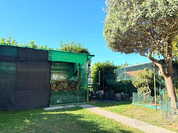 * Piano terra: cucina abitabile, soggiorno con caminetto, bagno finestrato con doccia, due verande coperte e giardino su entrambi i lati della casa;