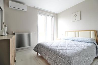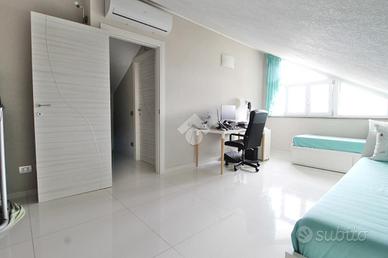 La zona notte, posta al primo piano, si compone di una cameretta, di una camera matrimoniale con cabina armadio, di un bagno finestrato completo di doccia e di un balcone privato, offrendo spazi funzionali e ben distribuiti pensati per il massimo comfort.