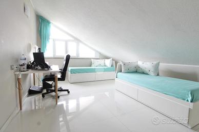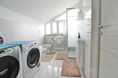 Al piano sottotetto si sviluppa un ampio e versatile locale hobby, attualmente utilizzato come studio, dotato di lavanderia completa di sanitari e doccia, ideale come spazio riservato multifunzionale da personalizzare secondo le proprie esigenze.