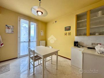 Entrando nell'immobile veniamo accolti da un'area esterna piantumata che ci porta all'entrata piastrellata con un balconcino che serve la cucina. Doppia porta di ingresso.