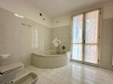Al piano primo si sviluppa invece la zona notte composta da una camera matrimoniale con balcone e due camere doppie con balcone. Bagno padronale con vasca angolare e balcone.
