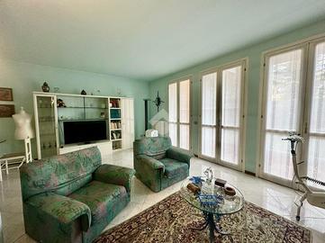 Al piano terra si sviluppa la zona giorno composta da uno spaziosissimo soggiorno con una parete totalmente finestrata che ci permesse di uscire nel giardino esclusivo retrostante, grande cucina abitabile ebagno di servizio con doccia.
