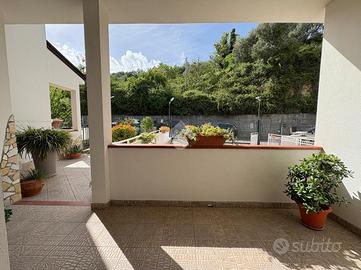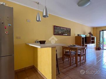 Proseguendo, troviamo un ampio salone che presenta pareti lineari che permettono di collocare molto facilmente i vari arredi, ed è servito da un terrazzo esposto a Sud. Questo piano è completato da un primo bagno, completamente rifinito con gres porcellanato e dotato di doccia. Da questo ambiente che è intermedio, grazie ad una scala interna in granito e corrimano in legno si può accede a tutti i livelli di casa;