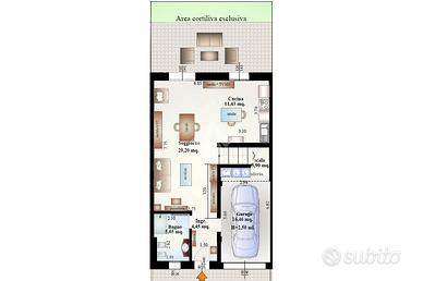 La soluzione gode al piano terra di ingresso su cucina e soggiorno open space di circa 40 mq e bagno. Al piano primo troviamo tre camere da letto, ripostiglio, disimpegno e bagno.