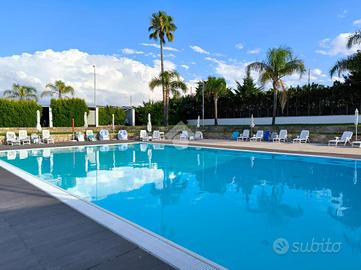 Il complesso è inoltre dotato di una bellissima piscina scoperta con ampio solarium e di un campo da tennis illuminato.