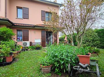 S.Martino in Argine direzione Budrio. In zona verde e tranquilla, proponiamo questa soluzione di villetta a schiera di testa. Ingresso da cancello automatico, piazzola per parcheggio di due auto e accesso al garage. Ingresso su soggiorno, antibagno e bagno finestrato con doccia. Cucina abitabile con accesso al giardino per poter pranzare all'aperto. Al primo piano troviamo le tre camere da letto, matrimoniale,doppia e singola oltre al secondo bagno finestrato sempre con doccia. Con scala a chiocciola possiamo raggiungere il sottotetto da utilizzare come studio, palestra o sala relax. In buono stato di manutenzione, abitabile fin da subito. A servizio dell'abitazione abbiamo l'impianto fotovoltaico di 3 Kw per coadiuvare il riscaldamento tramite pompa di calore. La zona e la tipologia offrono una ottima privacy e tranquillità.