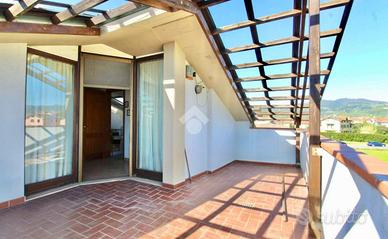 MONSUMMANO TERME - CINTOLESE VILLA A SCHIERA ANGOLARE CON SPAZIO ESTERNO L'immobile è situato nel comune di Monsummano Terme, nella frazione di Cintolese, in una zona residenziale, a pochi passi da tutti i principali servizi. L'abitazione, si sviluppa su due livelli, per un totale di c. ca 150 mq, oltre al piano soffitta di ulteriori 45 mq c. ca, pavimentata e rifinita. A completare la proprietà, uno spazio esterno di c. ca 172 mq che si sviluppa sui tre lati dell'abitazione, garantendo privacy e vivibilità. L'accesso avviene sia tramite cancello carrabile, ideale anche per il parcheggio, sia tramite cancello pedonale frontale. Il piano terra accoglie una zona giorno ampia e ben distribuita, dove il soggiorno di c. ca 33 mq si apre verso la cucina abitabile attraverso un caratteristico arco, creando un ambiente conviviale e funzionale. Sullo stesso livello troviamo un bagno finestrato con doccia e un comodo ripostiglio nel sottoscala. Salendo al piano primo si sviluppa la zona notte, composta da una camera matrimoniale e due camere doppie, tutte e tre corredate da spaziosi terrazzi. Il piano soffitta, è attualmente adibito a piacevole taverna, con un ripostiglio che ad oggi viene utilizzato come bagno di servizio, e con accesso ad un' ampia terrazza con vista panoramica. La costruzione è originaria del '92 e si presenta in buono stato di manutenzione, con infissi in legno e doppio vetro, zanzariere, un citofono per piano, e impianto d'allarme. E' presente inoltre l'autoclave e una cisterna di accumulo dell'acqua. Il tetto presente la guaina impermeabilizzante. Fissa un appuntamento per vedere l'immobile contattandoci ai seguenti recapiti: - chiamando lo - scrivendoci su whatsapp al - inviando una e-mail all'indirizzo di posta pthog@tecnocasa. it oppure visita le nostre pagine Facebook e Instagram 'Gruppo Tecnocasa Monsummano' Ogni agenzia ha un proprio titolare ed è autonoma - Le presenti informazioni non costituis