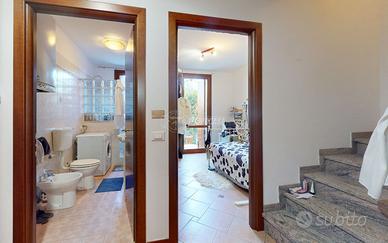 RIFERIMENTO: V140M In contesto collinare ricco di spazi verdi e viste panoramiche, proponiamo in vendita, in località Montepastore, graziosa villetta a schiera di 110 mq, distribuita su più livelli, ubicata in un complesso residenziale tranquillo e di recente costruzione. L'immobile è composto al piano seminterrato da ampia taverna con camino in muratura e accesso a cantina. Al piano terra abbiamo accesso dal giardino privato antistante con patio abitabile, ingresso su soggiorno con cucina che affaccia su secondo giardino pavimentato e recintato, bagno con box doccia in vetro cemento e camera matrimoniale; al piano superiore si sviluppa la zona notte con seconda camera matrimoniale, soppalco (adibito a terza camera o cabina armadio) e secondo bagno con vasca idromassaggio, il tutto realizzato in stile moderno. Attualmente l'immobile è locato con contratto in scadenza a Settembre 2028. PERCHE' ACQUISTARE L'IMMOBILE: - Soluzione ideali per coppie e famiglia, ottima disposizione degli spazi; - Zona tranquilla, immersa nel verde, ma ben collegata; - Doppio giardino privato. - Classe: NC