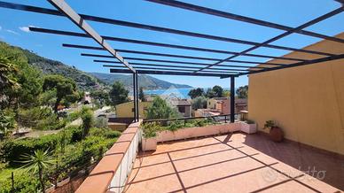 PARCO PETILIA: a 300 metri dal mare, in un parco privato circondato dalla pineta della località denominata Ripe Rosse,proponiamo in vendita una porzione di villa su due livelli con ingresso indipendente e un posto auto di proprietà . L'abitazione si compone di un soggiorno con un antistante patio, un cucinino e un bagno al piano terra, dalla scala interna si raggiunge il primo piano, composto da due camere matrimoniale, di cui una con terrazzo angolare a livello, una cameretta con finestra e un bagno con doccia. Dal disimpegno del primo piano si accede sull'ampio terrazzo da cui è possibile godere della meravigliosa vista sul mare e sul porticciolo turistico di San Nicola. Completa la proprietà, un ampio giardino,un ripostiglio posto al piano terra e una zona pavimentata che circonda l'abitazione dov'è possibile godere del tempo libero. I metri quadrati complessivi indicati nella presente proposta pubblicitaria sono da considerarsi come superficie commerciale.