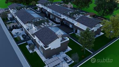 MONZA OVEST NUOVA COSTRUZIONE VILLA CON GIARDINO - Villa 4 Monza Ovest, in zona residenziale e ben collegata con mezzi pubblici, scuole e negozi, nasce un nuovo progetto abitativo sostenibile, elegante e funzionale. La villa, in Classe Energetica A4, rappresenta il perfetto equilibrio tra design contemporaneo e benessere quotidiano. La metratura complessiva, di circa 241 mq commerciali, è progettata per offrire spazi armoniosi e perfettamente distribuiti. L'abitazione gode di ingresso indipendente, ampio giardino privato di circa 275 mq, ideale per creare una zona relax immersa nel verde, predisposizione di piscina interrata o fuori terra, area barbecue e angoli dedicati alla vita all'aperto. Luminosa zona giorno al piano terra che si affaccia sul giardino, offrendo un'atmosfera accogliente e versatile, cucina abitabile separata o modern kitchen island. Scala comoda che collega le quattro camere da letto, terrazzo privato con vista meravigliosa, tranquillità e privacy. Doppi servizi finestrati, oltre alla lavanderia, praticità e comfort sono garantiti. L'autorimessa fuori terra è doppia in larghezza, con predisposizione Wallbox e accesso diretto all'abitazione, ampia taverna di circa 125 mq, rifinita e accogliente, perfetta per creare un'area hobby, palestra, home cinema e/o postazione smart working, lavanderia e locale tecnico dedicati. La cura dei dettagli è pensata per offrire comfort, avanguardia, sostenibilità, carattere e charme. L'impianto fotovoltaico privato con batterie di accumulo rende autonoma l'abitazione, raffrescamento estivo e riscaldamento autonomo, domotica integrata per il controllo intelligente degli ambienti e degli elettrodomestici. Le finiture di pregio, comprese nel prezzo, sono da personalizzare a cura e scelta del cliente. Residenza Iris, la casa smart ed ecologica, unisce armonia, tecnologia, funzionalità e bellezza, a pochi minuti da Milano, ma lontana dal ritmo frenetico. Il luogo perfetto dove costruire i propri ricordi.