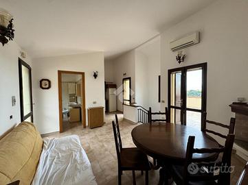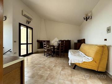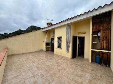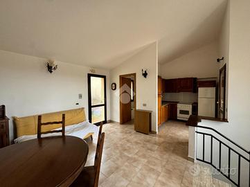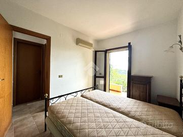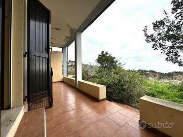 Posteggiata l'auto sul retro dell'immobile, percorso qualche passo, arriviamo all'ingresso principale, dove veniamo accolti dal luminoso soggiorno, esaltato da pavimenti chiari e ampi infissi, che evidenzia l'angolo cottura, parzialmente separato. In questo livello è inoltre presente un bagno finestrato. Dalla zona giorno inoltre l'accesso sul pezzo forte della casa, ovvero l'ampia veranda dal quale godere in relax del panorama mozzafiato.